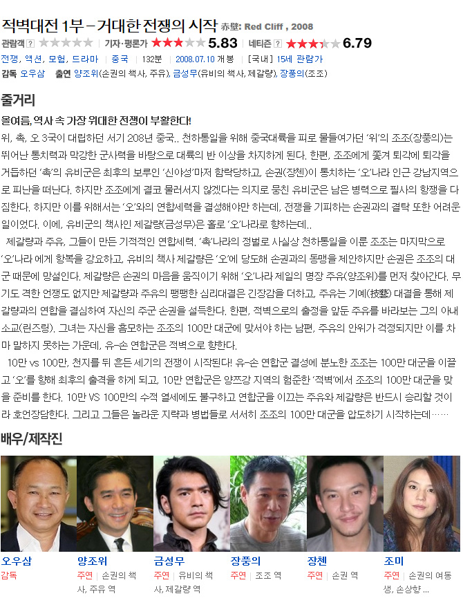 ico적벽대전 1부 거대한 전쟁의 시작 Red Cliff.2008/