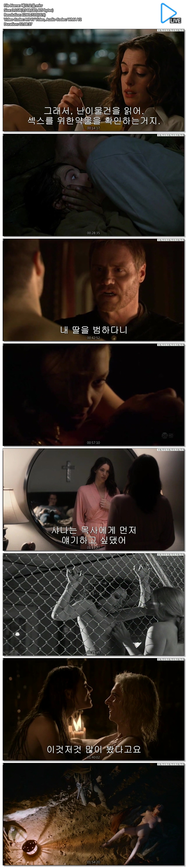 | 베드모음.mkv | 3.1 G | 02:08:00 | 1280X720 |