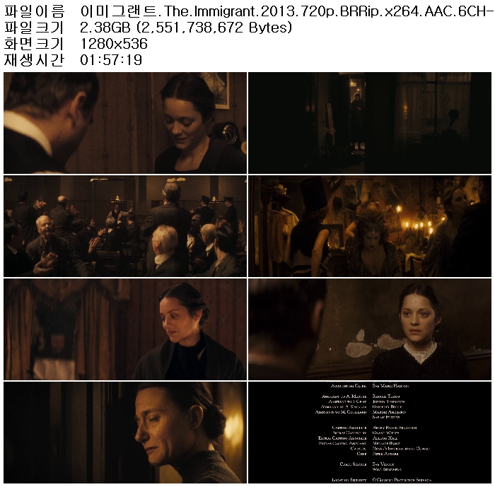 | 이미그랜트.The.Immigrant.2013.720p.BRRip.x264.AAC.6CH-CC.mp4 | 2.4 G | 01:57:00 | 1280x720 |