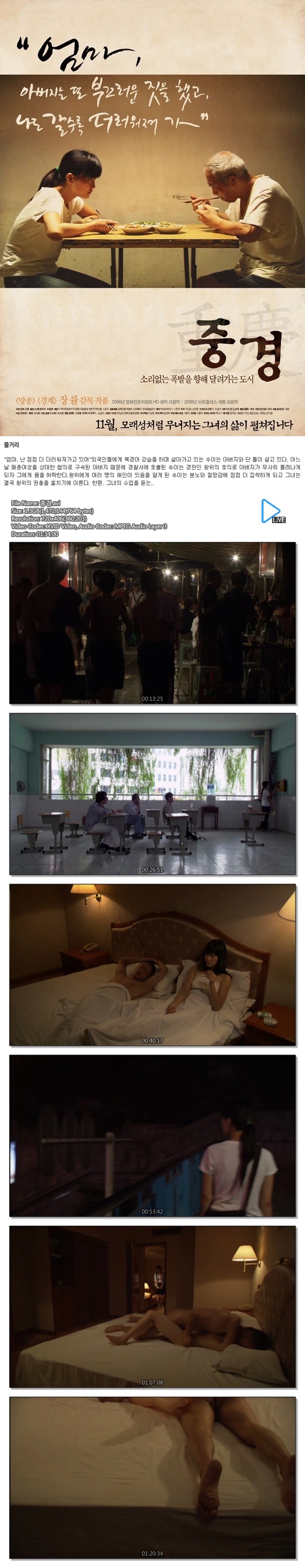 | 중경.avi | 1.4 G | 01:34:00 | 800X450 |