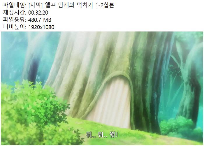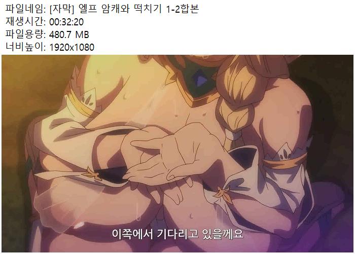 [자막] 엘프 암캐와 떡치기 1-2합본.mp4 480.7 M 00:32:20 1920x1080