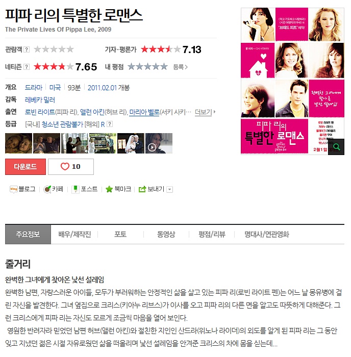 | The.Private.Lives.Of.Pippa.Lee.720p.BluRay.x264-SiNNERS.mkv | 4.4 G | 01:38:09 | 1280x720 |