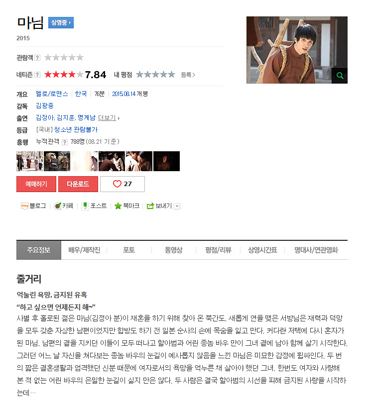 | 마님_2015.mp4 | 1.7 G | 01:15:00 | 1280X720 |