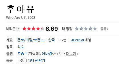 | 후 아 유.mp4 | 1.3 G | 01:43:00 | 800X449 |
