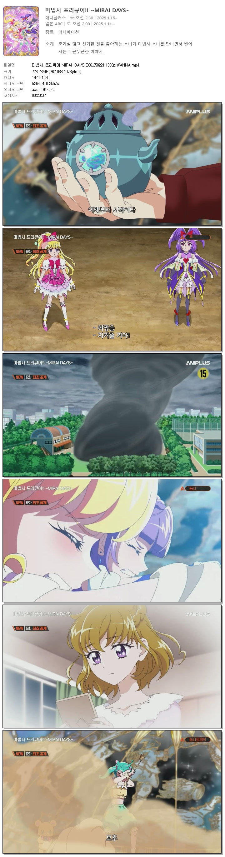 | 마법사 프리큐어 MIRAI DAYS.E06.250221.1080p.WANNA.mp4 | 726.7 M | 00:23:37 | 1920x1080 |