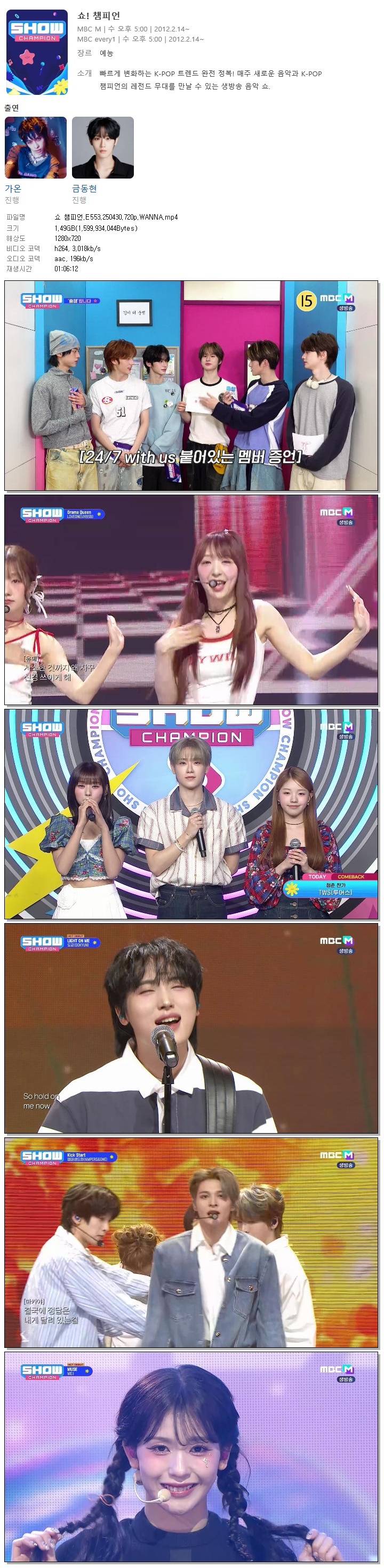 | [MBC MUSIC] 쇼 챔피언.E553.250430.720p.WANNA[투어스, 82MAJOR].mp4 | 1.5 G | 01:06:12 | 1280x720 |