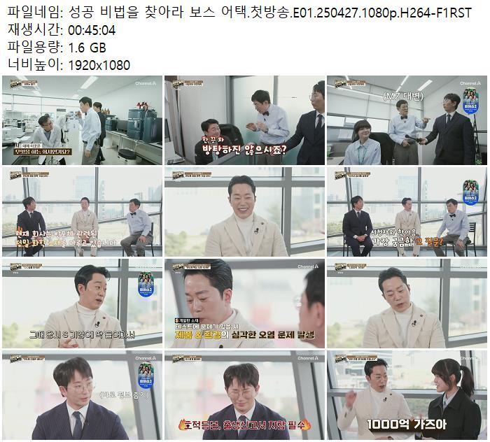 | 성공 비법을 찾아라 보스 어택.첫방송.E01.250427.1080p.H264-F1RST.mp4 | 1.6 G | 00:45:04 | 1920x1080 |