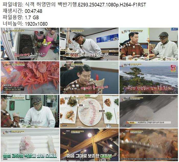 | 식객 허영만의 백반기행.E293.250427.1080p.H264-F1RST.mp4 | 1.7 G | 00:47:48 | 1920x1080 |