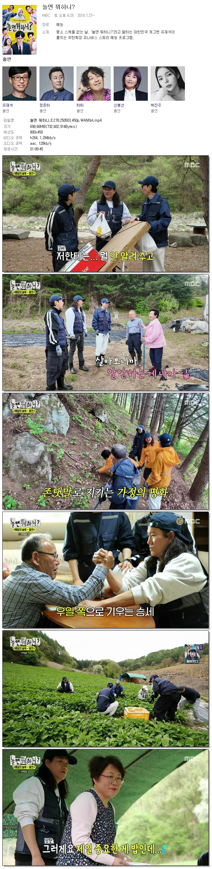 [MBC] 놀면 뭐하니.E278.250503.450p.WANNA[임원희, 임우일].mp4 698.7 M 01:08:45 800x450