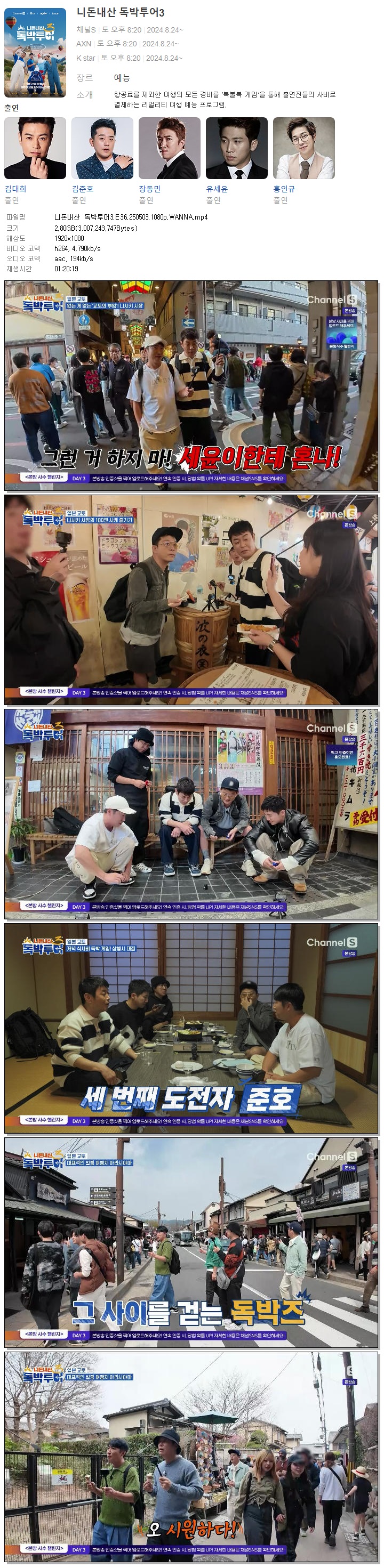 [채널S] 니돈내산 독박투어3.E36.250503.1080p.WANNA[김준호, 장동민].mp4 2.8 G 01:20:19 1920x1080