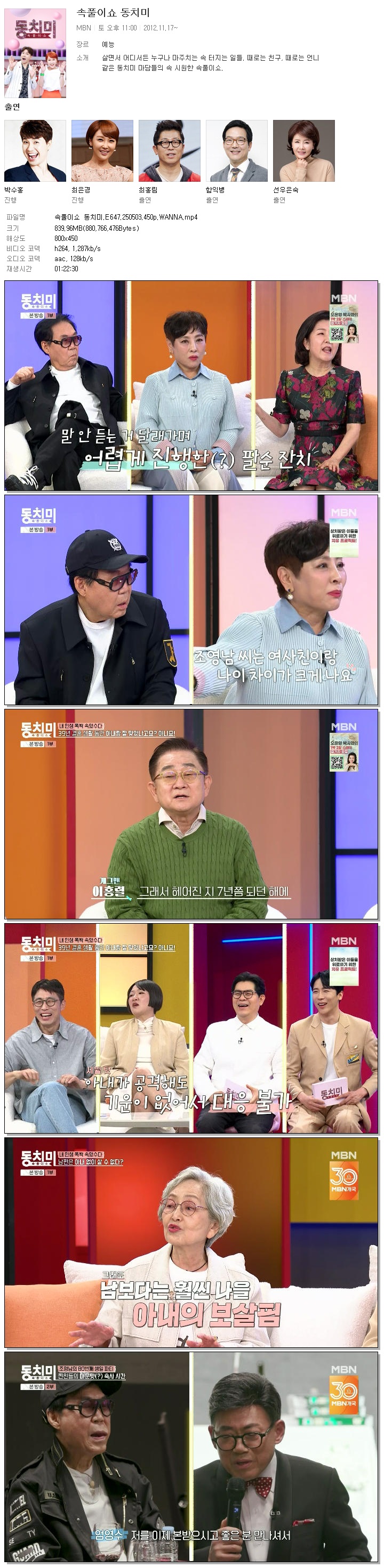 [MBN] 속풀이쇼 동치미.E647.250503.450p.WANNA[김현숙, 조영남].mp4 840 M 01:22:30 800x450