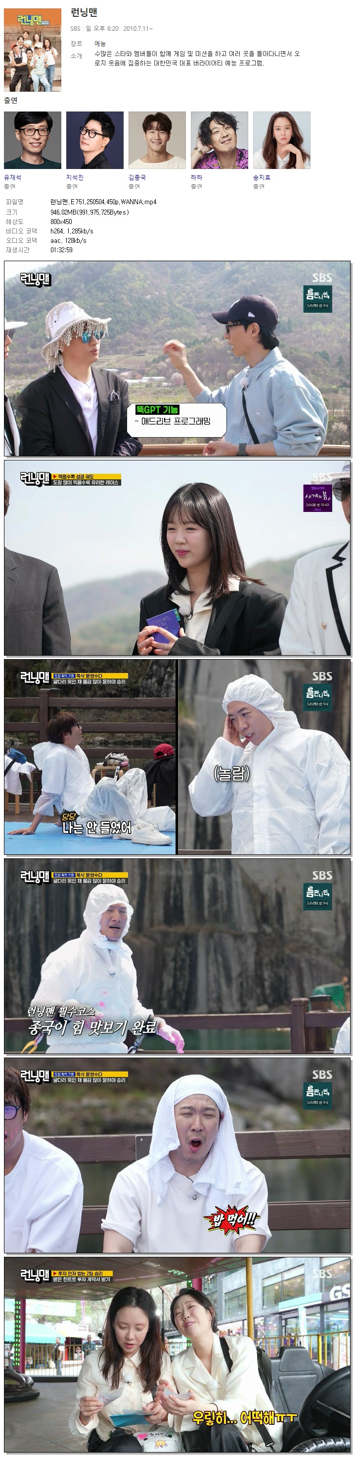| [SBS] 런닝맨.E751.250504.450p.WANNA[최다니엘, 지예은].mp4 | 946 M | 01:32:59 | 800x450 |
