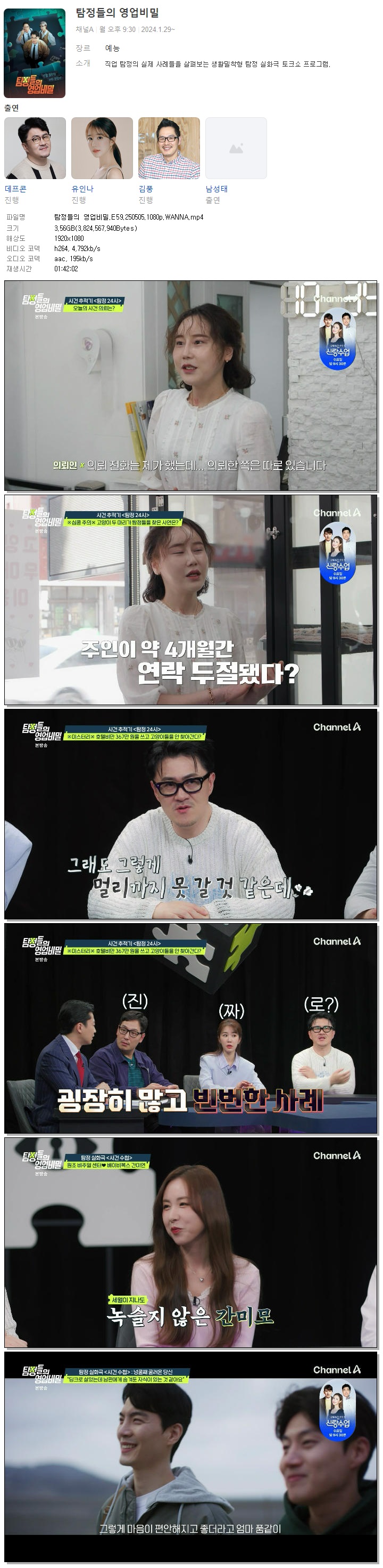 [채널A] 탐정들의 영업비밀.E59.250505.1080p.WANNA[간미연].mp4 3.6 G 01:42:02 1920x1080