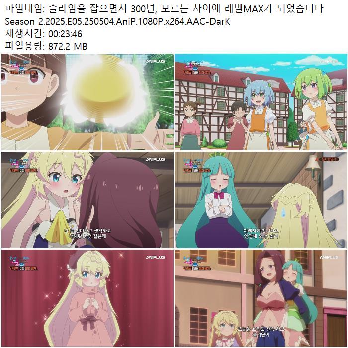| 슬라임을 잡으면서 300년, 모르는 사이에 레벨MAX가 되었습니다 Season 2.2025.E05.250504.AniP.1080P.x264.AAC-DarK.mp4 | 872.2 M | 00:23:46 | 1920x1080 |