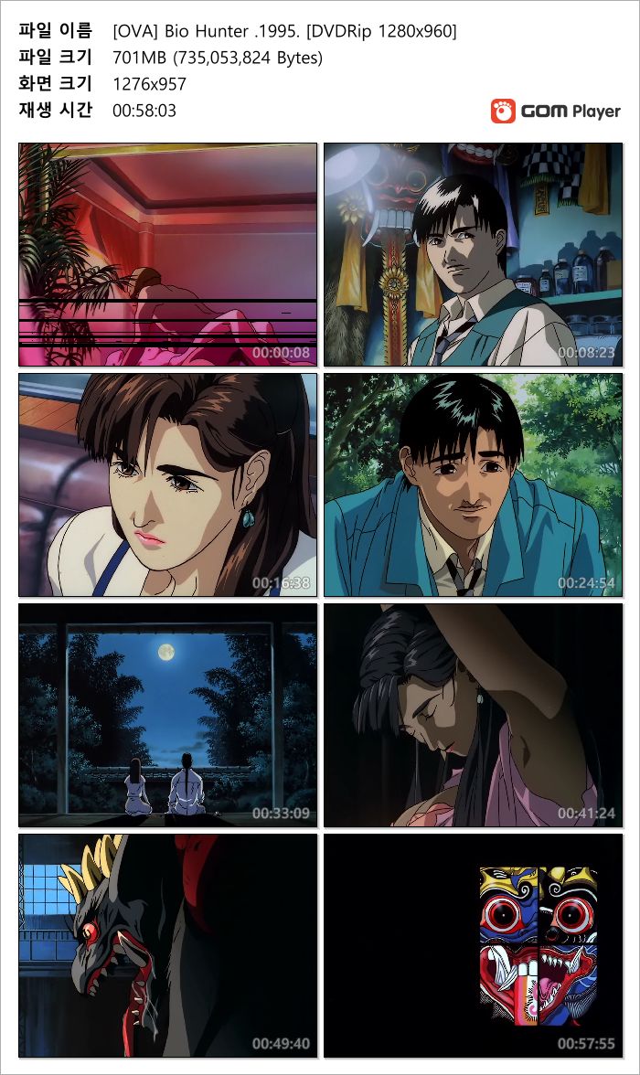 | [OVA] Bio Hunter .1995. [DVDRip 1280x960].avi | 701 M | 00:58:03 | 1280x960 |