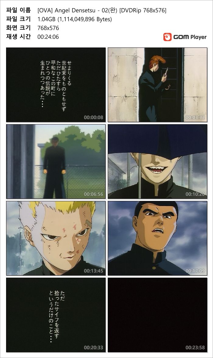 | [OVA] Angel Densetsu - 02(완) [DVDRip 768x576].mkv | 1 G | 00:24:06 | 768x576 |