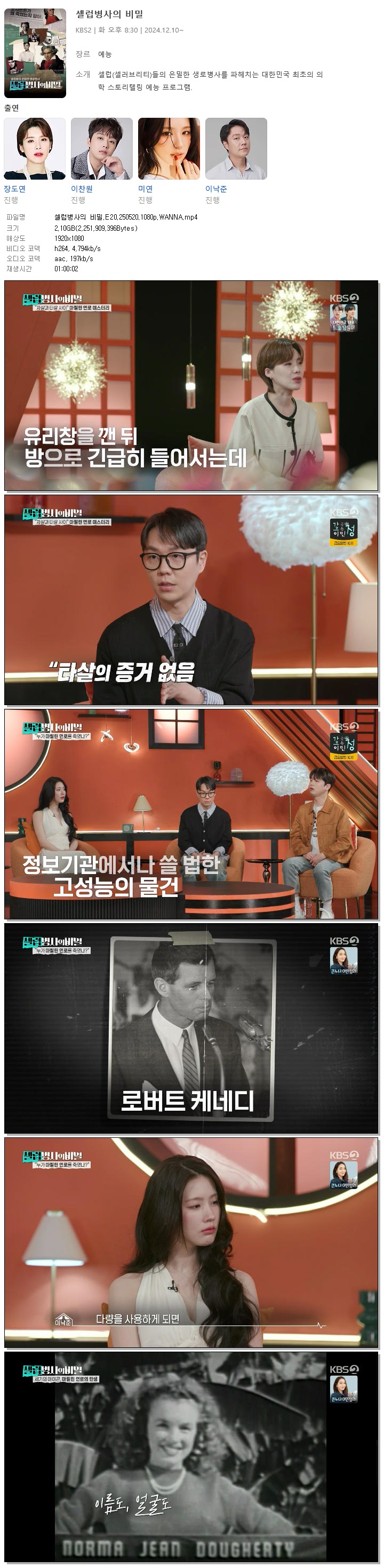 [KBS2] 셀럽병사의 비밀.E20.250520.1080p.WANNA[장도연, 이찬원].mp4 2.1 G 01:00:02 1920x1080