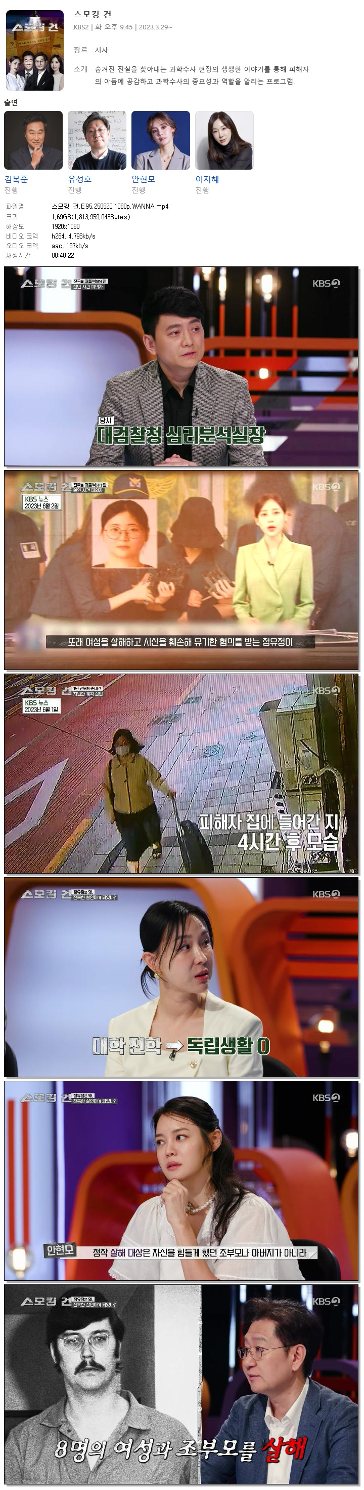 | [KBS2] 스모킹 건.E95.250520.1080p.WANNA[김복준, 안현모].mp4 | 1.7 G | 00:48:22 | 1920x1080 |