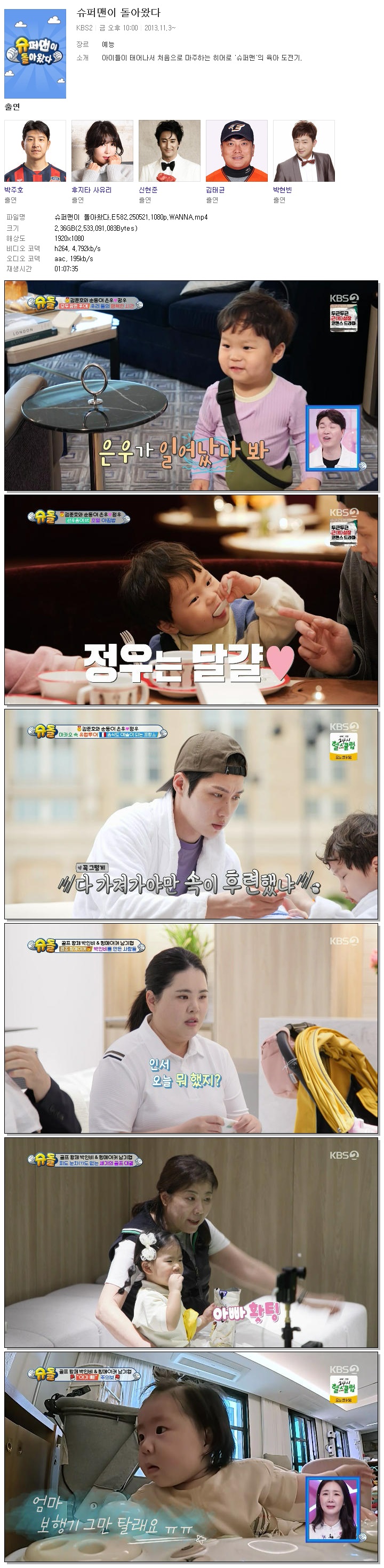 | [KBS2] 슈퍼맨이 돌아왔다.E582.250521.1080p.WANNA[김준호, 박인비].mp4 | 2.4 G | 01:07:35 | 1920x1080 |