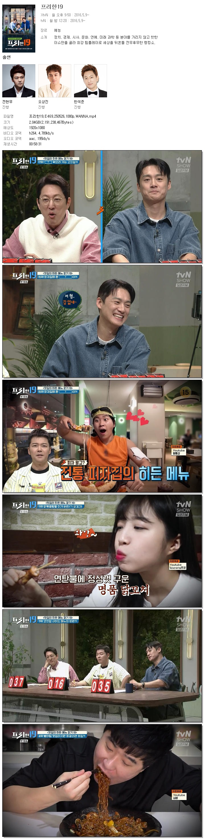 | [TVNSHOW] 프리한19.E469.250526.1080p.WANNA[전현무, 오상진].mp4 | 2 G | 00:58:31 | 1920x1080 |