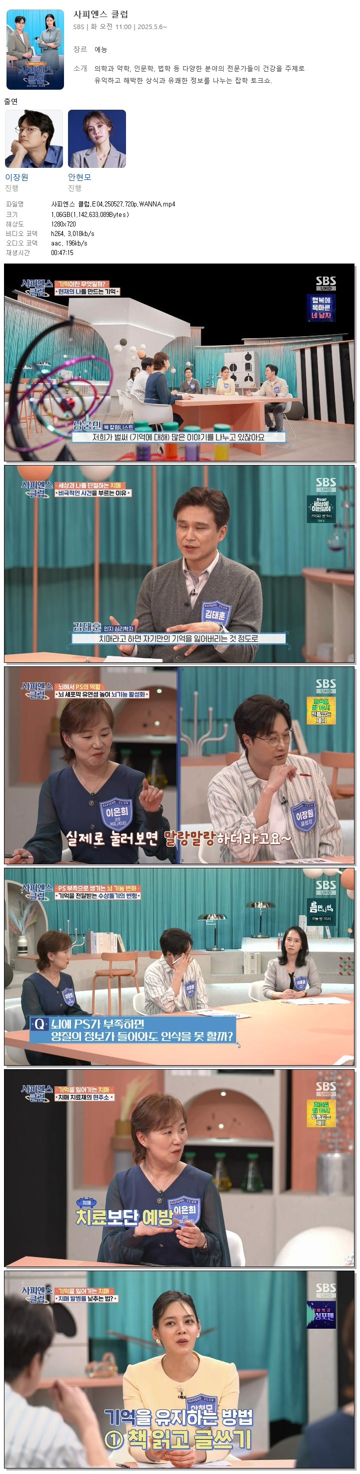 [SBS] 사피엔스 클럽.E04.250527.720p.WANNA[이장원, 안현모].mp4 1.1 G 00:47:15 1280x720