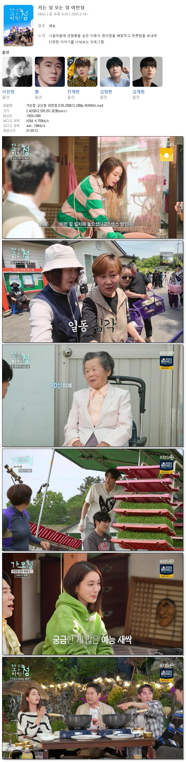 [KBS2] 가는정 오는정 이민정.E05.250613.1080p.WANNA[신동엽, 이찬원].mp4 2.4 G 01:09:12 1920x1080