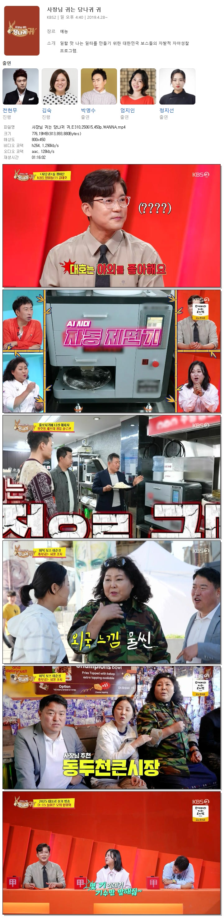 | [KBS2] 사장님 귀는 당나귀 귀.E310.250615.450p.WANNA[엄지인, 홍주연].mp4 | 776.2 M | 01:16:02 | 800x450 |