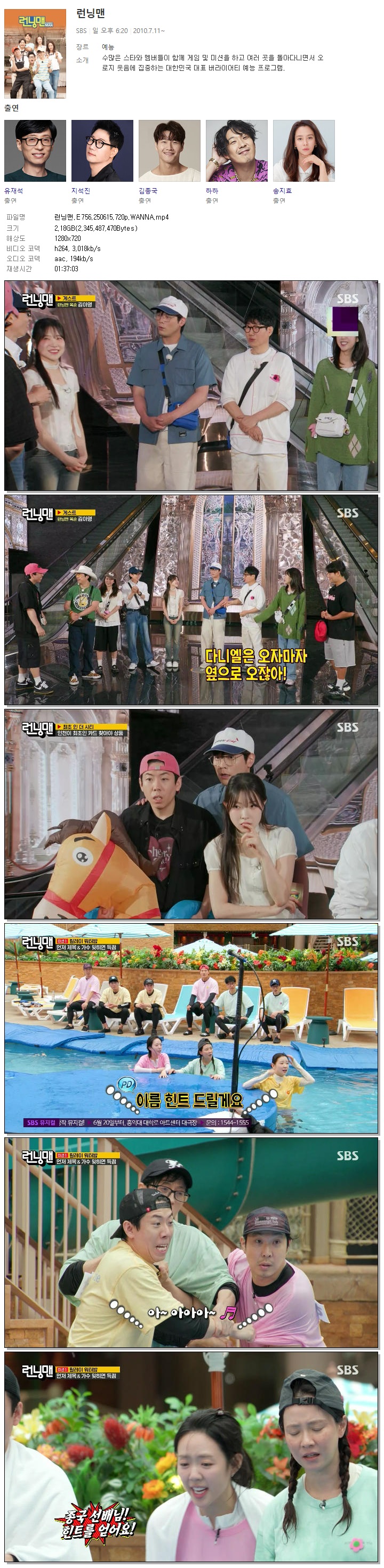 | [SBS] 런닝맨.E756.250615.720p.WANNA[김아영].mp4 | 2.2 G | 01:37:03 | 1280x720 |