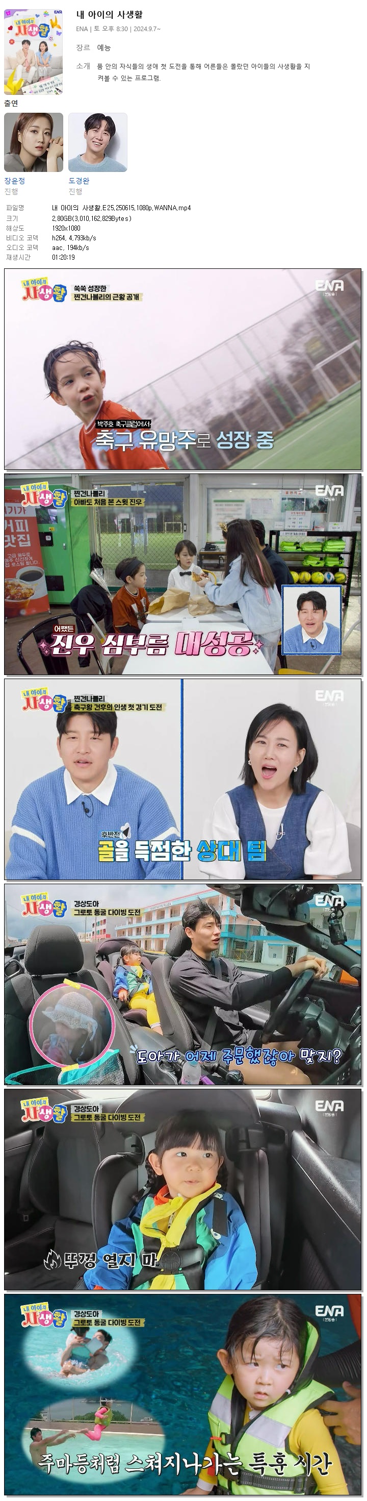 | [ENA] 내 아이의 사생활.E25.250615.1080p.WANNA[도경완, 장윤정].mp4 | 2.8 G | 01:20:19 | 1920x1080 |