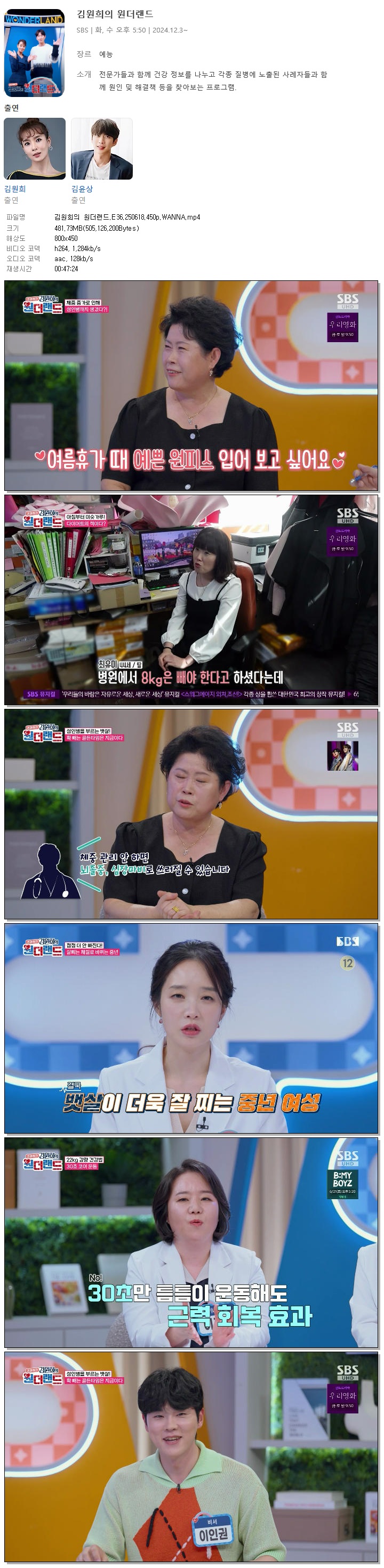 | [SBS] 김원희의 원더랜드.E36.250618.450p.WANNA[김원희, 김윤상].mp4 | 481.7 M | 00:47:24 | 800x450 |