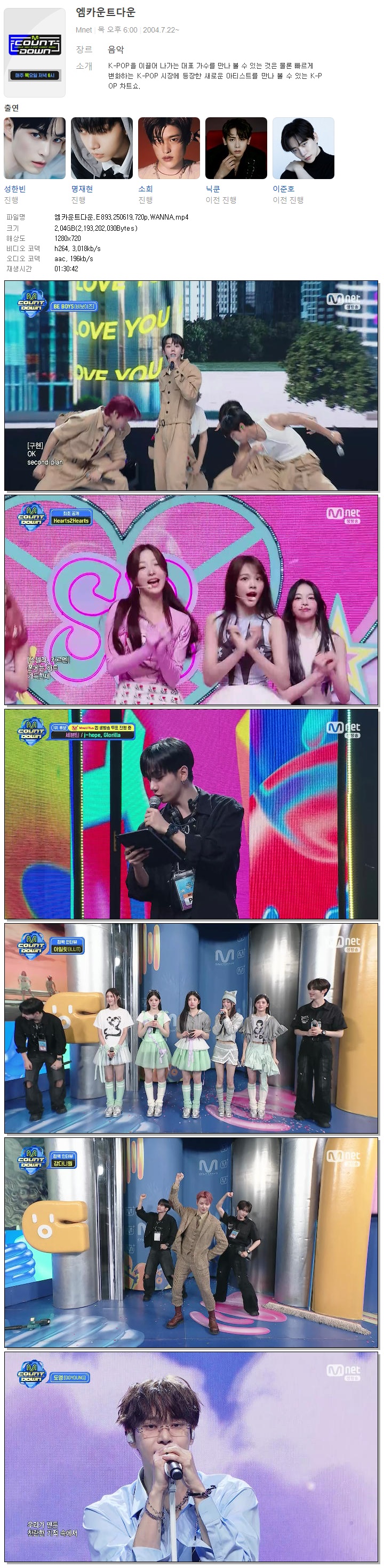 | [M.net] 엠카운트다운.E893.250619.720p.WANNA[제이홉, 아일릿].mp4 | 2 G | 01:30:42 | 1280x720 |