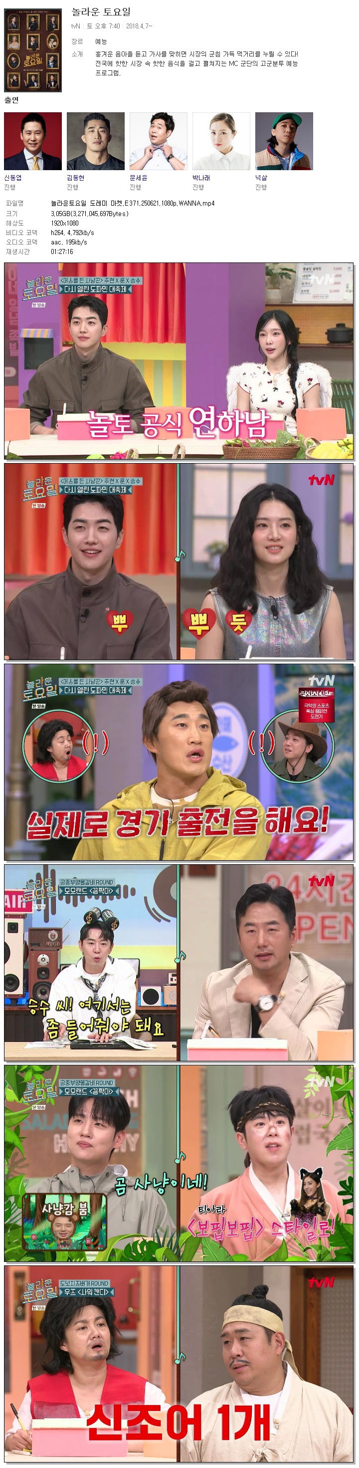 | [TVN] 놀라운토요일 도레미 마켓.E371.250621.1080p.WANNA[류승수, 강훈].mp4 | 3 G | 01:27:16 | 1920x1080 |