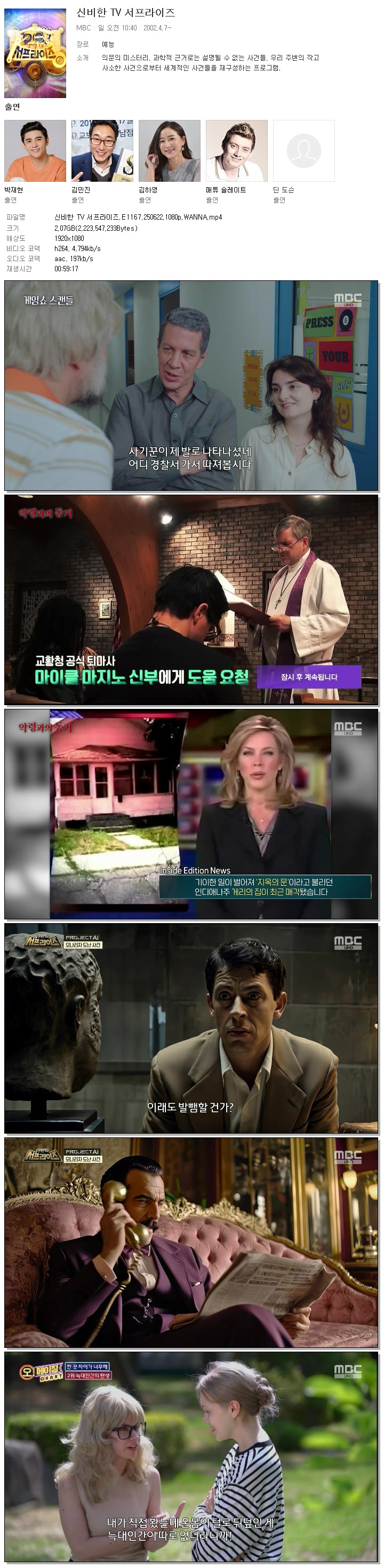 | [MBC] 신비한 TV 서프라이즈.E1167.250622.1080p.WANNA.mp4 | 2.1 G | 00:59:17 | 1920x1080 |