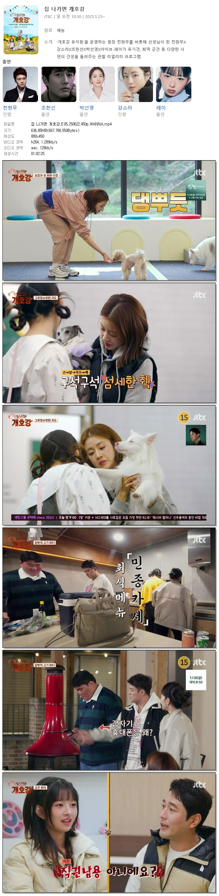 | [JTBC] 집 나가면 개호강.E05.250622.450p.WANNA[조한선, 강소라].mp4 | 636.9 M | 01:02:25 | 800x450 |