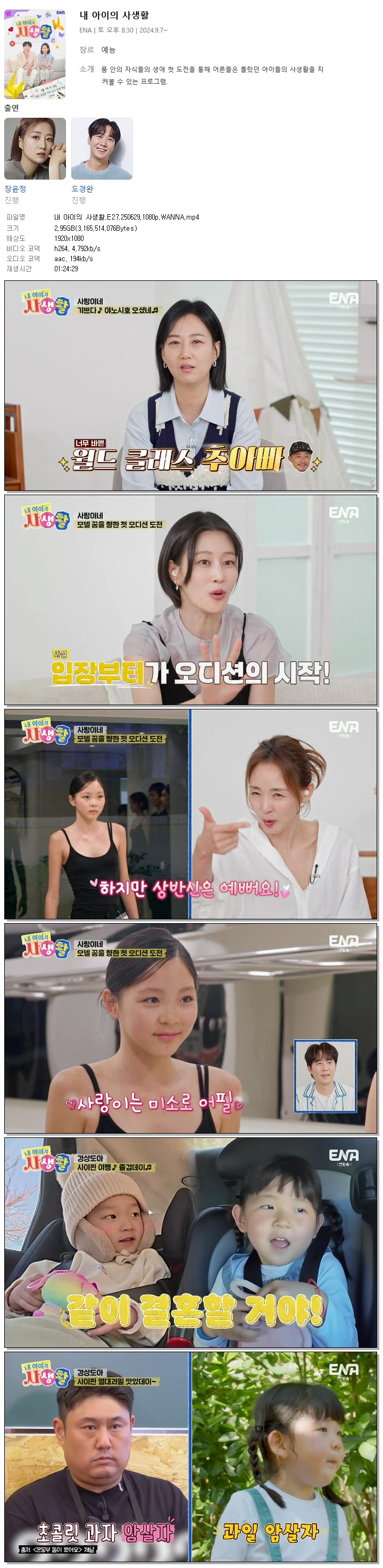 | [ENA] 내 아이의 사생활.E27.250629.1080p.WANNA[도경완, 장윤정].mp4 | 2.9 G | 01:24:29 | 1920x1080 |