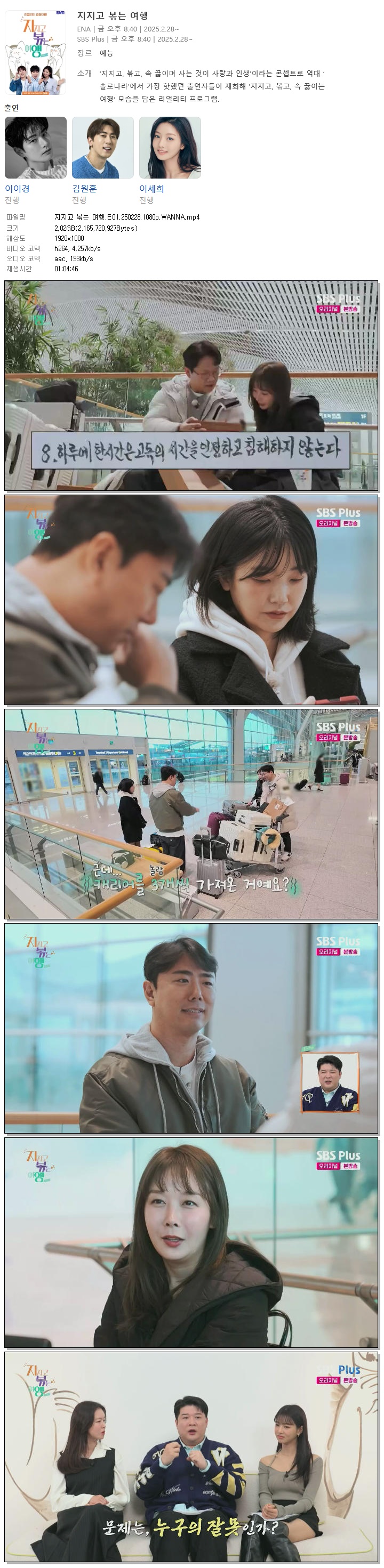 [ENA] 지지고 볶는 여행.E01.250228.1080p.WANNA[신동, 경수진].mp4 2 G 01:04:46 1920x1080