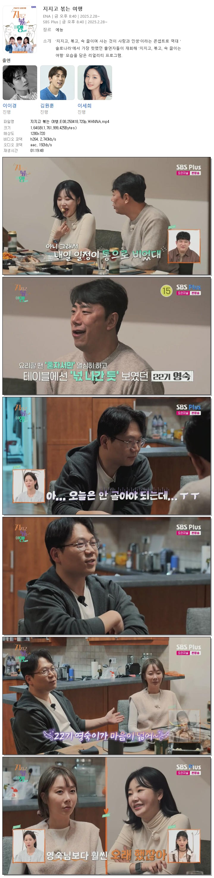[SBS PLUS] 지지고 볶는 여행.E08.250418.720p.WANNA[신동, 경수진].mp4 1.6 G 01:19:48 1280x720