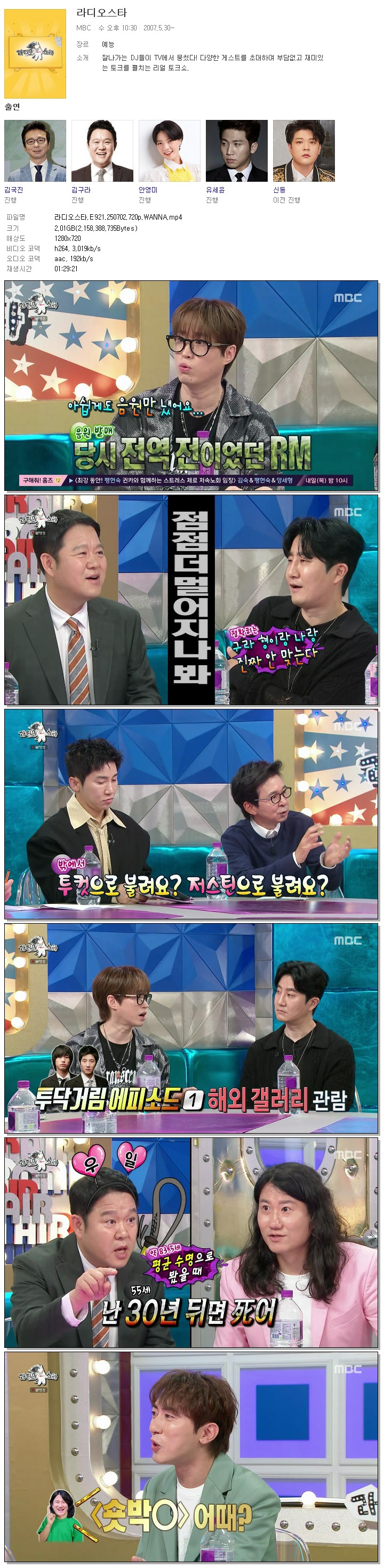 | [MBC] 라디오스타.E921.250702.720p.WANNA[타블로, 임우일].mp4 | 2 G | 01:29:21 | 1280x720 |