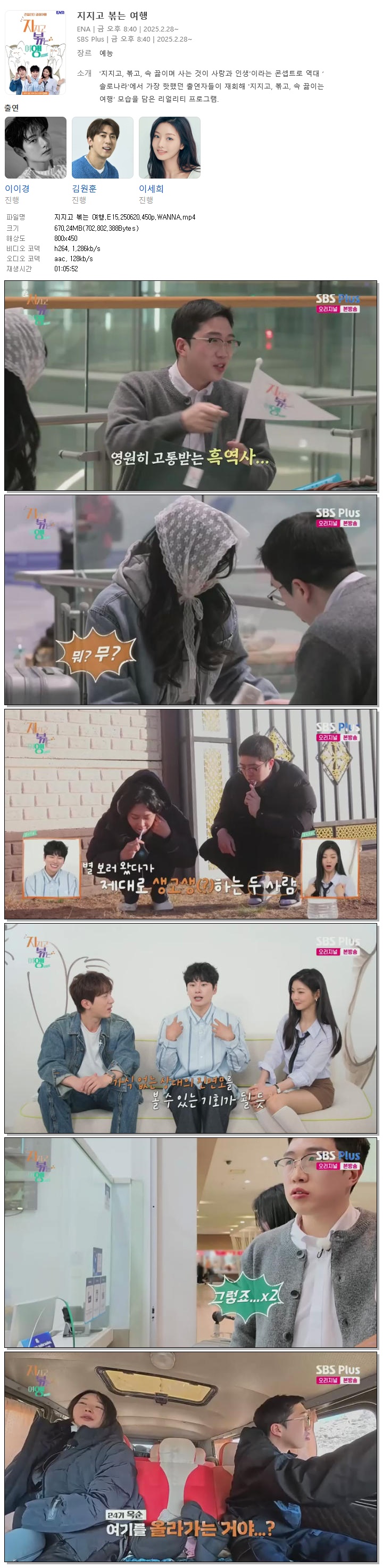 | [SBS PLUS] 지지고 볶는 여행.E15.250620.450p.WANNA[이이경, 김원훈].mp4 | 670.2 M | 01:05:52 | 800x450 |