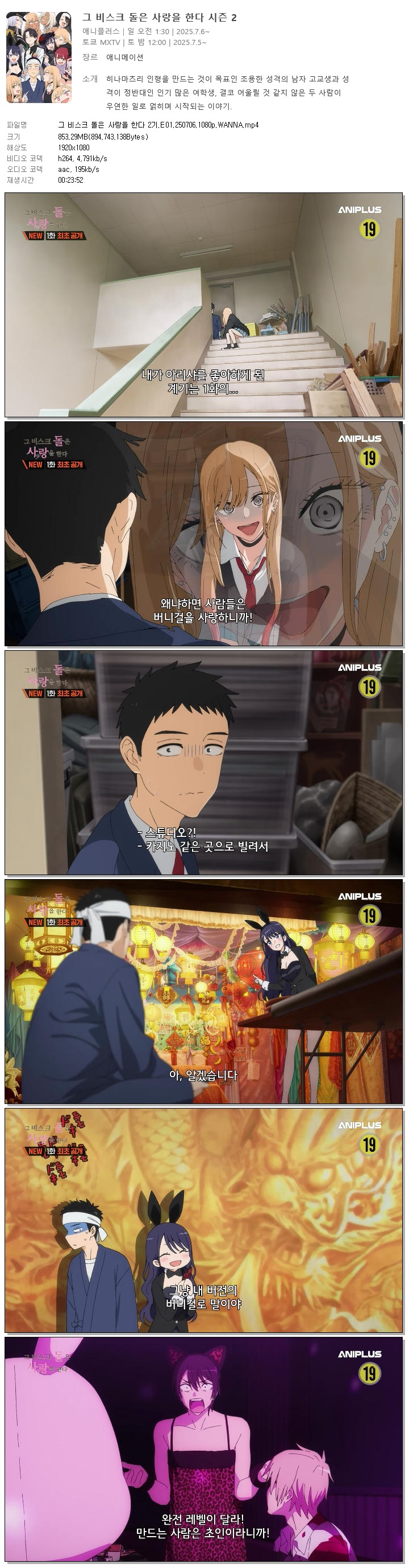 | 그 비스크 돌은 사랑을 한다 2기.E01.250706.1080p.WANNA.mp4 | 853.3 M | 00:23:52 | 1920x1080 |