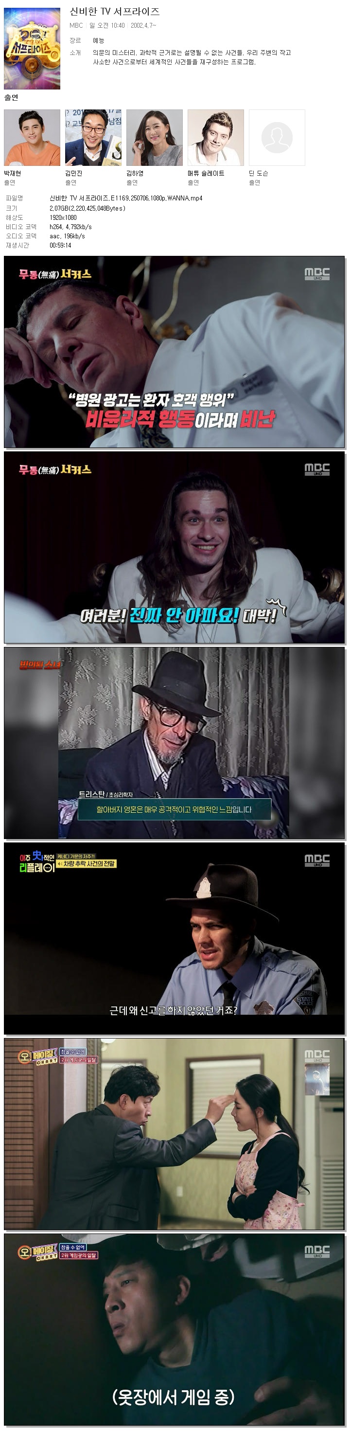 | [MBC] 신비한 TV 서프라이즈.E1169.250706.1080p.WANNA.mp4 | 2.1 G | 00:59:14 | 1920x1080 |