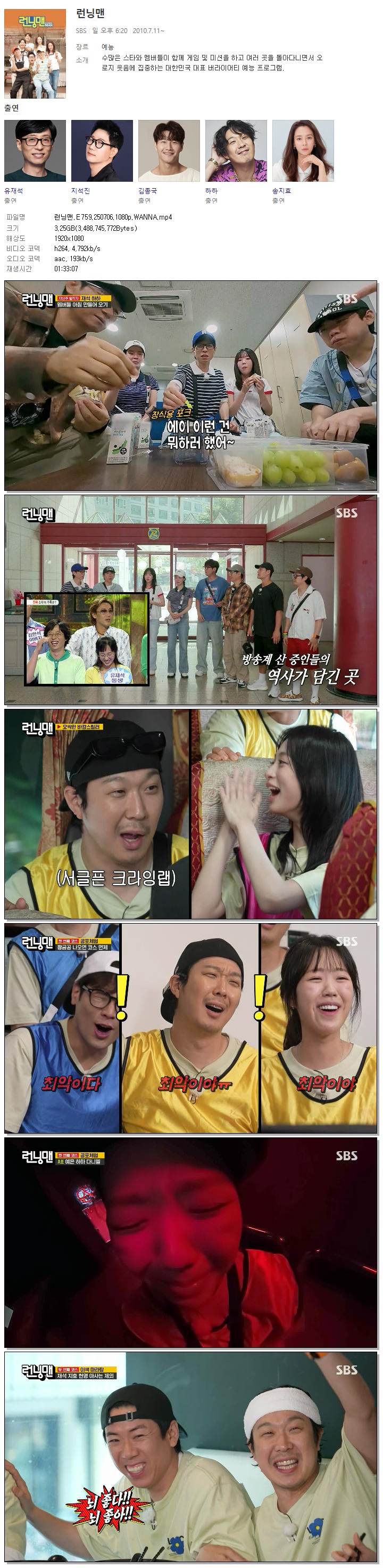 | [SBS] 런닝맨.E759.250706.1080p.WANNA[주현영, 아사].mp4 | 3.2 G | 01:33:07 | 1920x1080 |