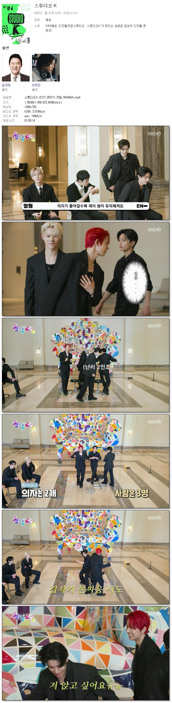 [KBS2] 스튜디오K.E271.250711.720p.WANNA.mp4 1.4 G 01:00:14 1280x720