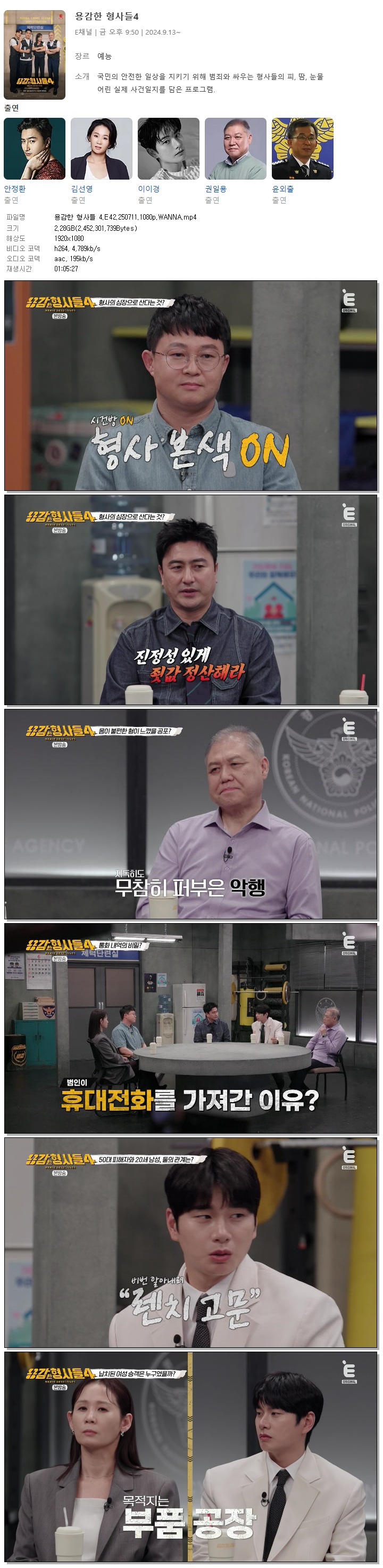 | [E채널] 용감한 형사들 4.E42.250711.1080p.WANNA[이이경, 안정환].mp4 | 2.3 G | 01:05:27 | 1920x1080 |