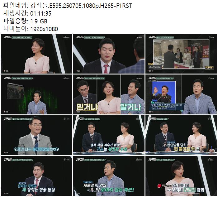 | 강적들.E595.250705.1080p.H265-F1RST.mp4 | 1.9 G | 01:11:00 | 1920x1080 |