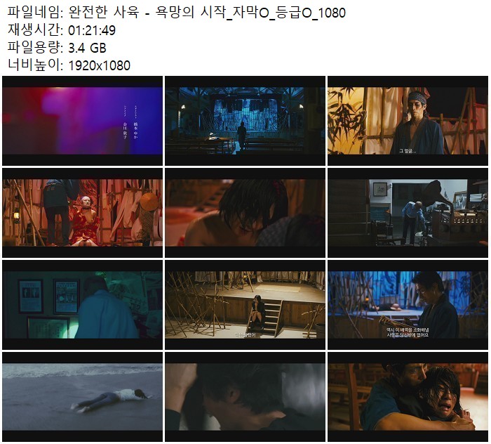 | 완전한 사육 - 욕망의 시작_자막O_등급O_1080.mp4 | 3.4 G | 01:21:49 | 1920x1080 |