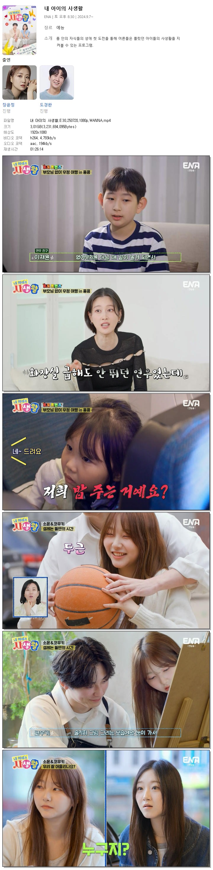 [ENA] 내 아이의 사생활.E30.250720.1080p.WANNA[도경완, 장윤정].mp4 3 G 01:26:14 1920x1080