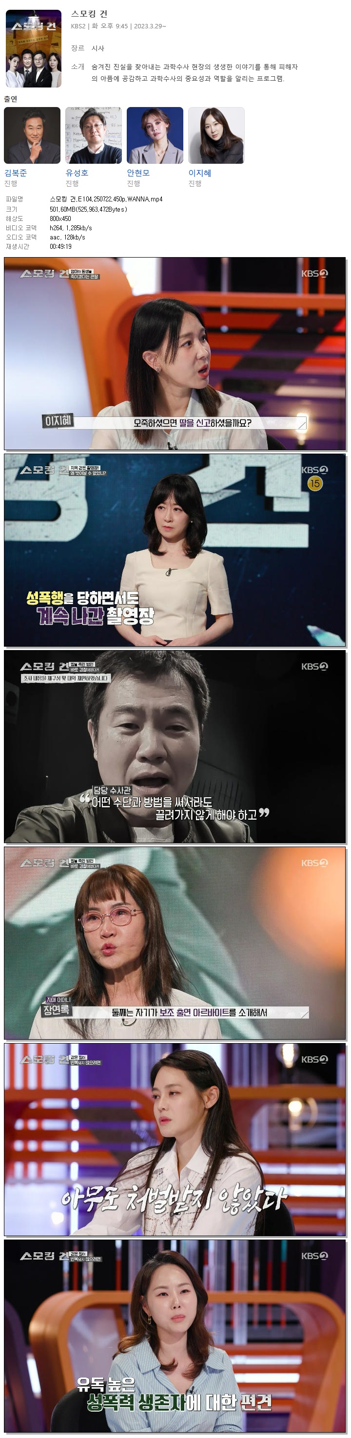 | [KBS2] 스모킹 건.E104.250722.450p.WANNA[김복준, 안현모].mp4 | 501.6 M | 00:49:19 | 800x450 |