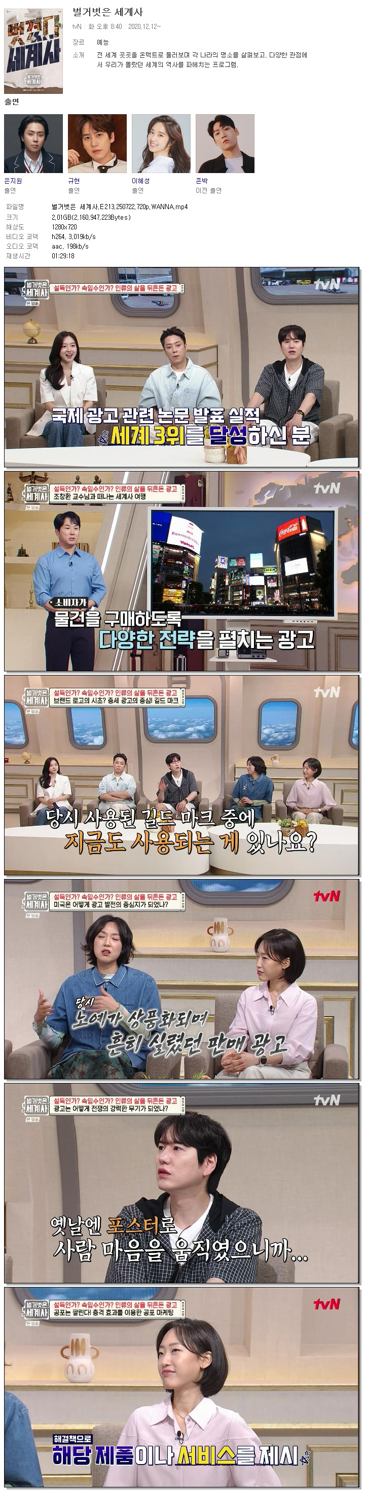 | [TVN] 벌거벗은 세계사.E213.250722.720p.WANNA[은지원, 규현].mp4 | 2 G | 01:29:18 | 1280x720 |