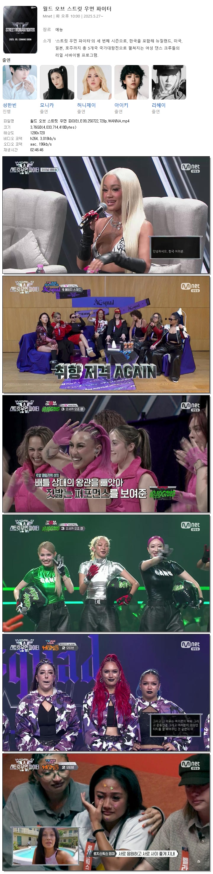 [M.net] 월드 오브 스트릿 우먼 파이터.E09.250722.720p.WANNA[카에아, 쿄카].mp4 3.8 G 02:46:46 1280x720